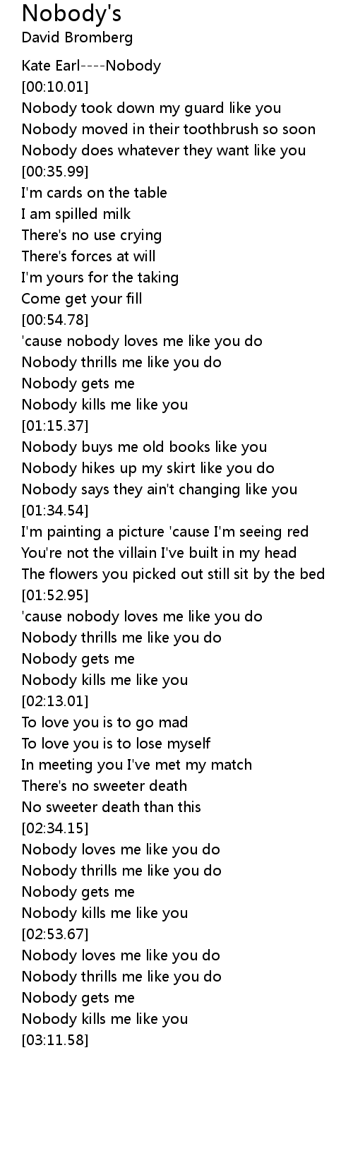 Nobody loves me like you do |