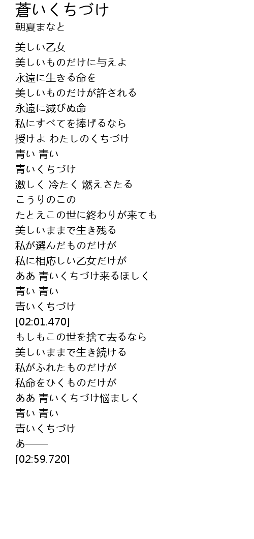 ああ 青いくちづけ来るほしく |