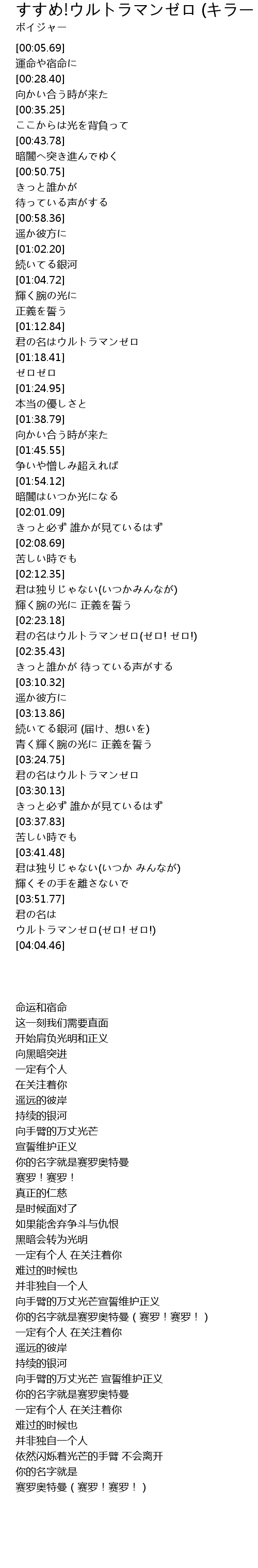 | [02:24.12] | 君の名はウルトラマンゼロ(ゼロ! ゼロ!) |