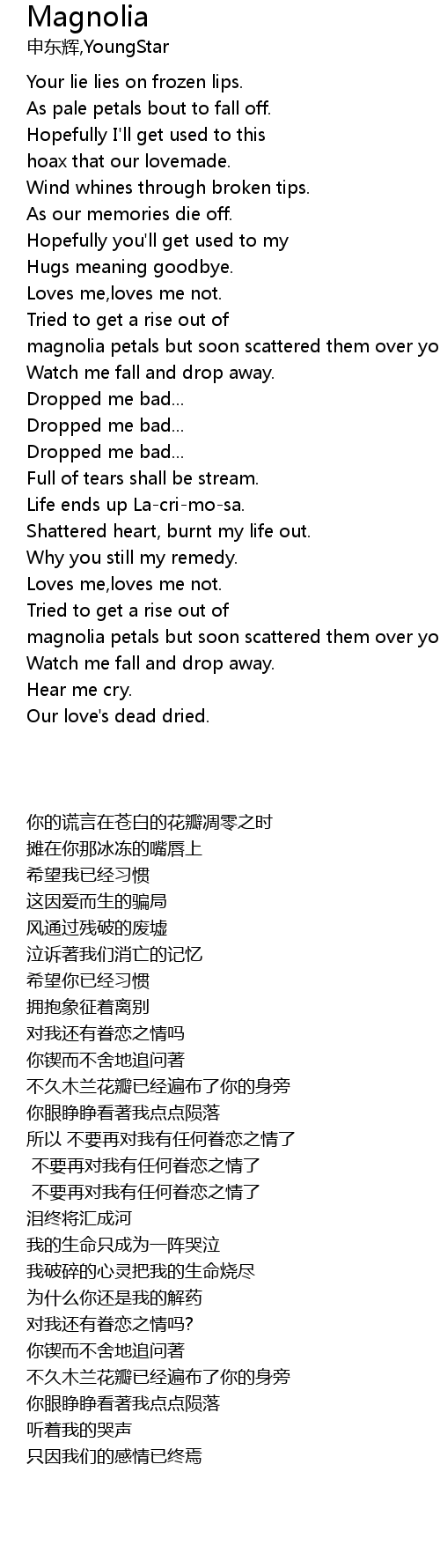 magnolia petals but soon scattered them over you. |