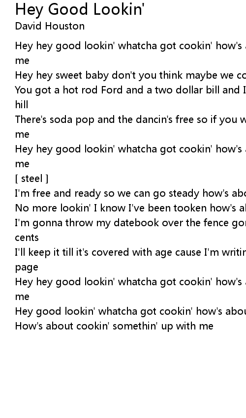 Hey hey good lookin' whatcha got cookin' how's about cookin' something up with me |