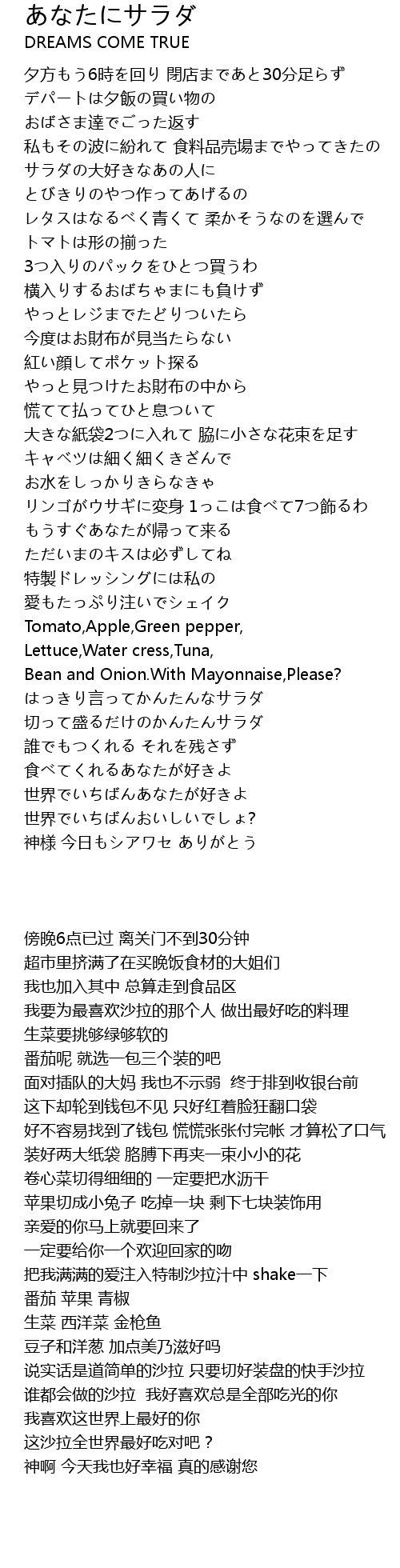 | [02:15.200] | 谁都会做的沙拉 我好喜欢总是全部吃光的你 |