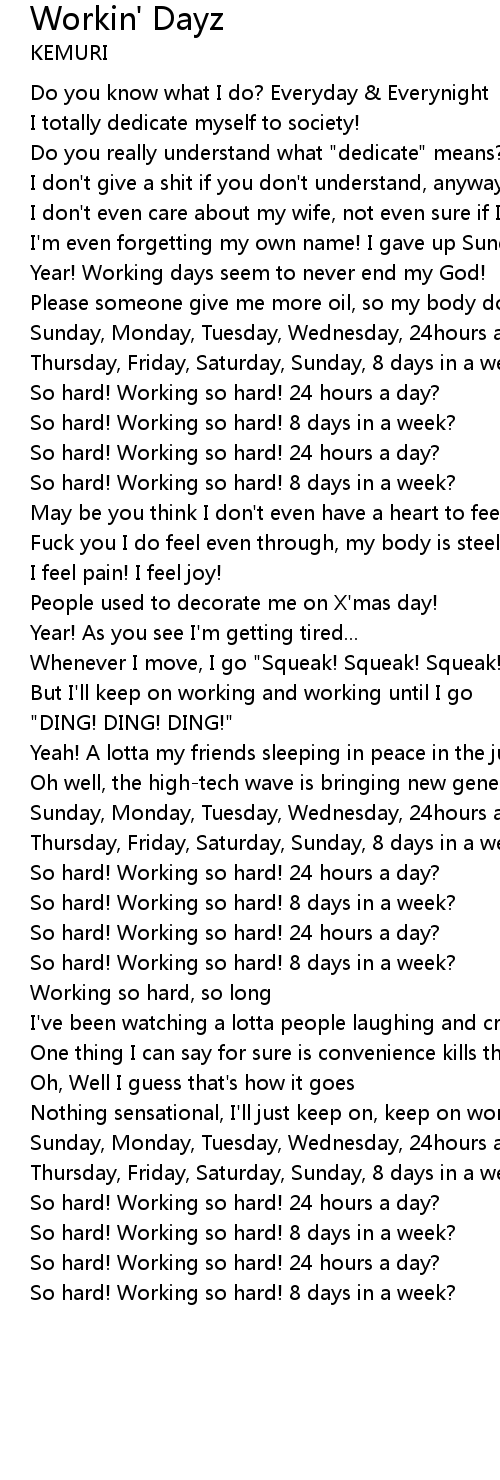 Thursday, Friday, Saturday, Sunday, 8 days in a week are my working days! |
