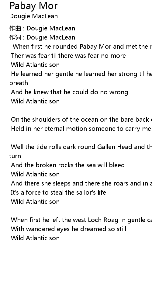 | Well the tide rolls dark round Gallen Head and the wind has nowhere left to turn | |
