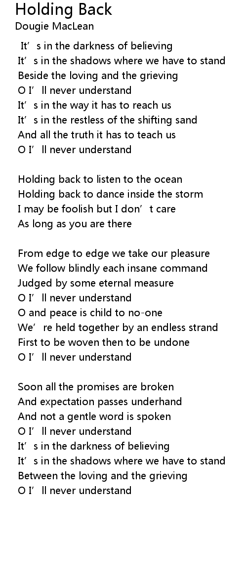 | 歌曲 | Holding Back |