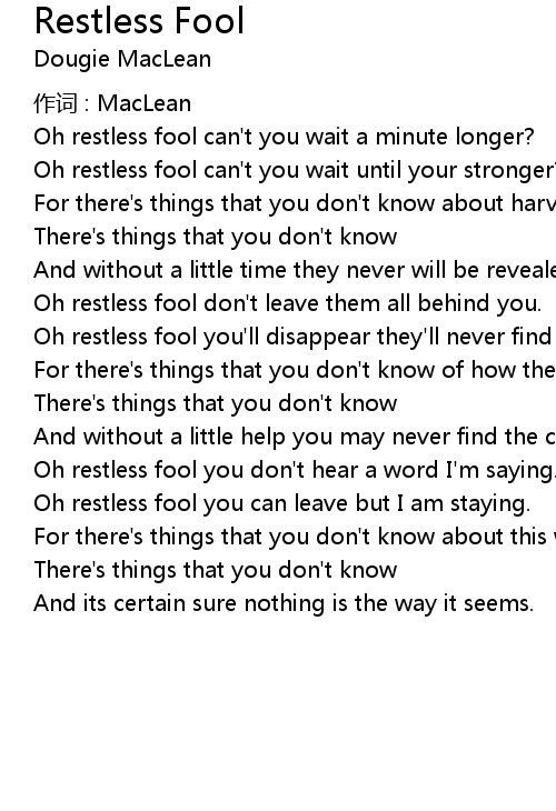 | Oh restless fool you don' t hear a word I' m saying. | |
