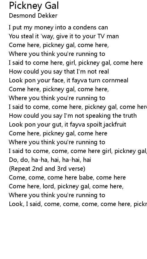 Look, I said, come, come, come, come here, pickney gal, come here... |