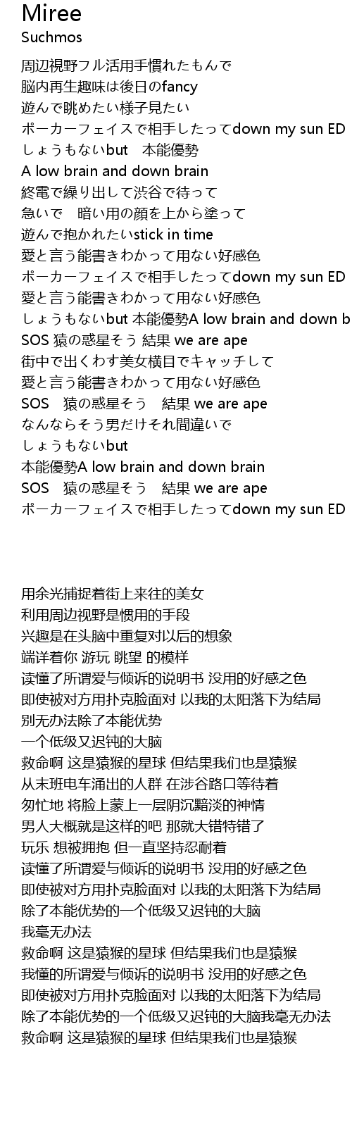 | [02:15.78] | SOS 猿の惑星そう 結果 we are ape |