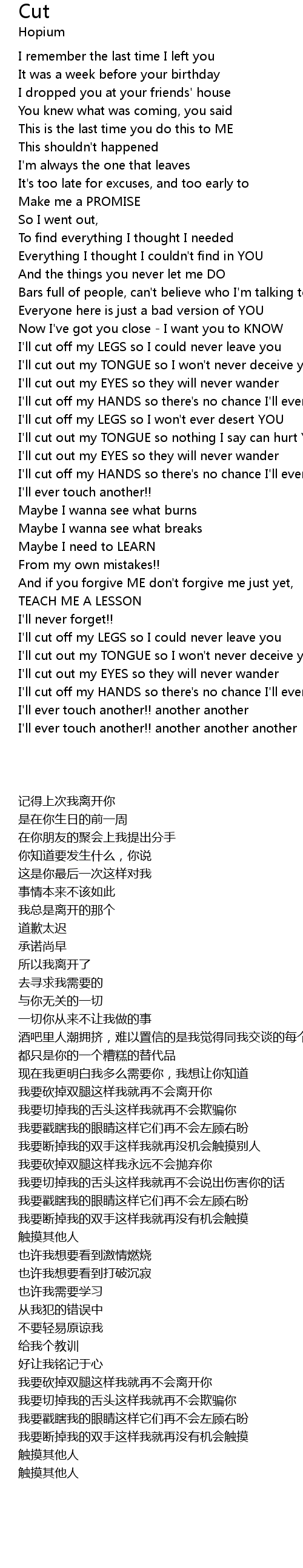 I'll cut off my HANDS so there's no chance I'll ever touch |