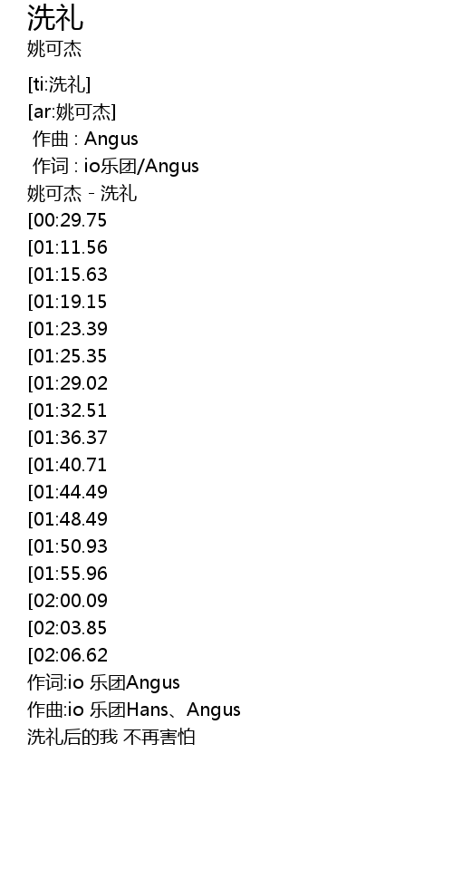 | [00:00.00] | 姚可杰 - 洗礼 |