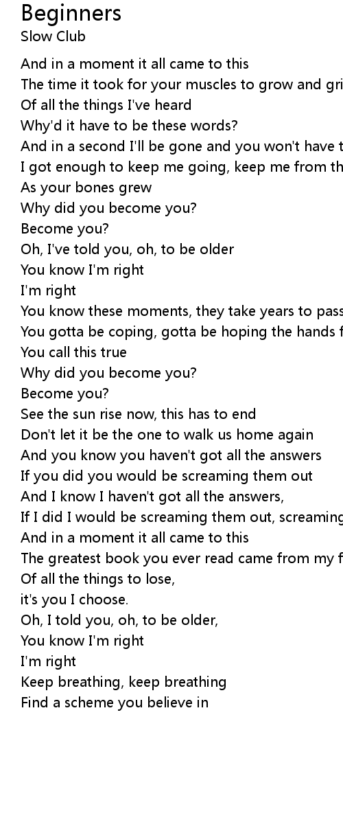 | Oh, I've told you, oh, to be older | |