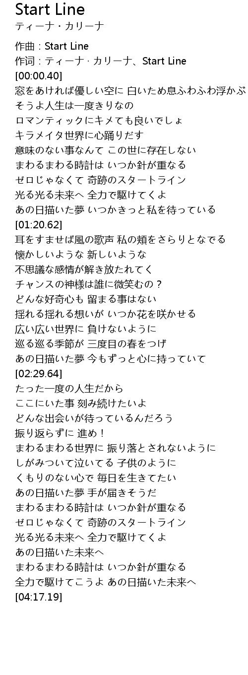 | [00:00.05] | 作词:ティーナ · カリーナ、Start Line |