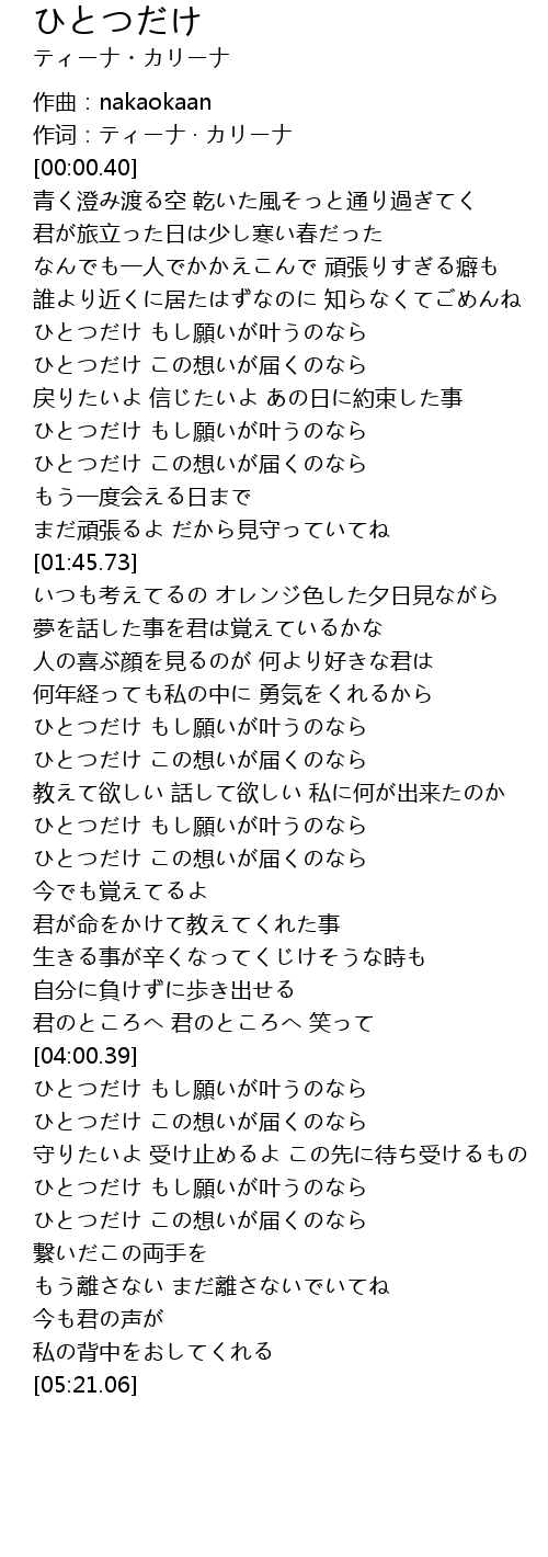 | [04:12.46] | ひとつだけ この想いが届くのなら |