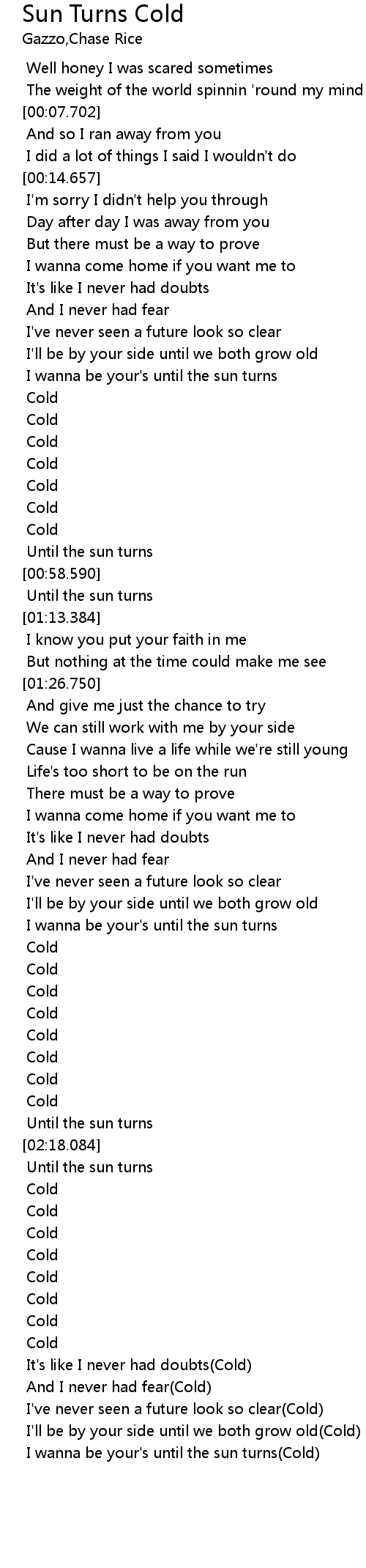 I wanna be your's until the sun turns(Cold) |