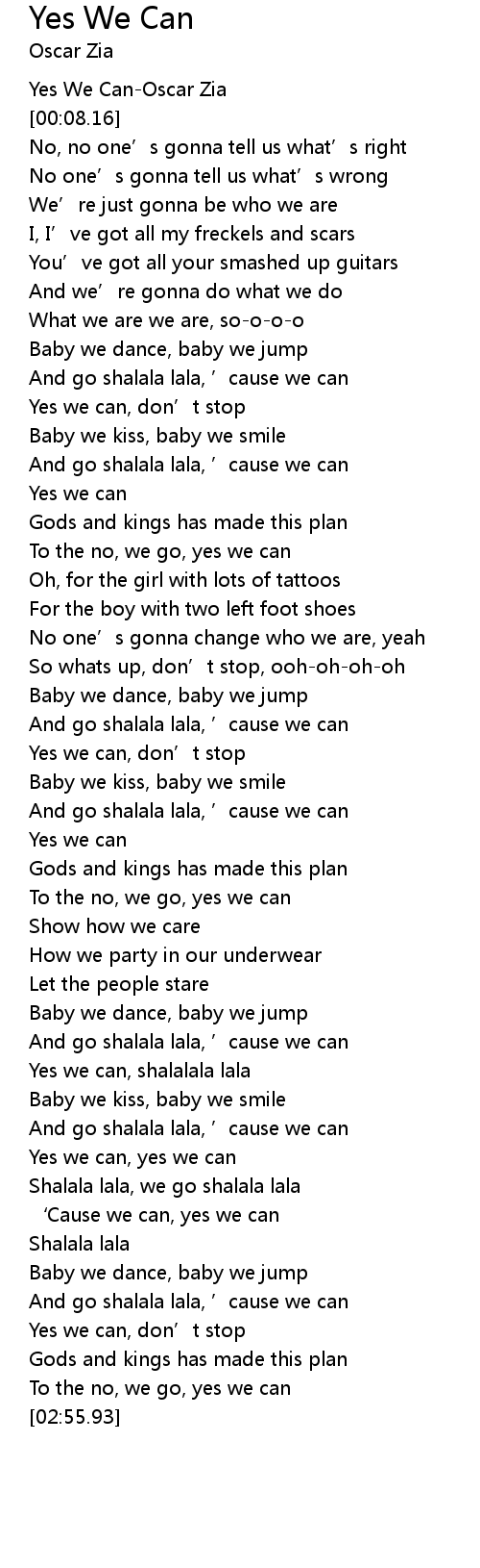 | [00:00.46] | Yes We CanOscar Zia |
