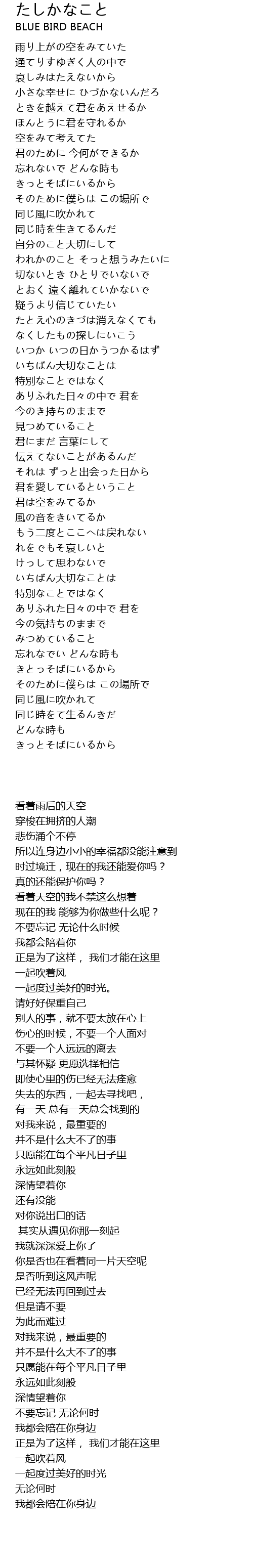 | [02:47.31] | 你是否也在看着同一片天空呢 |