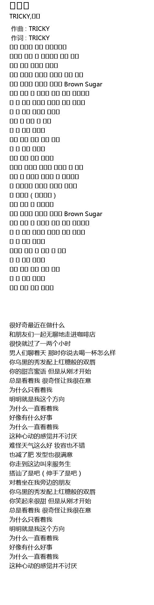 | [00:01.00] | 作词 : TRICKY |