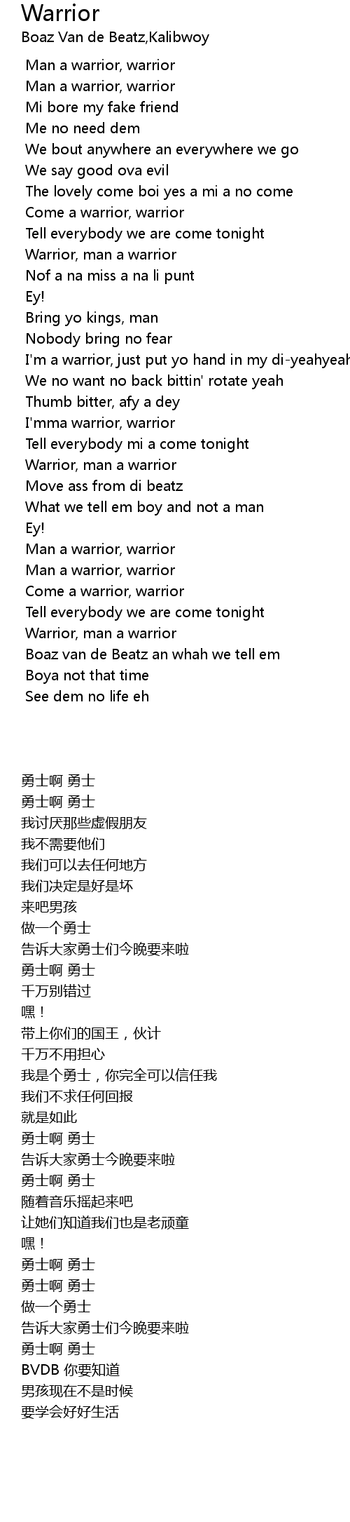 Come a warrior, warrior |