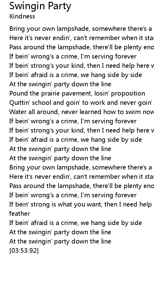 At the swingin' party down the line |