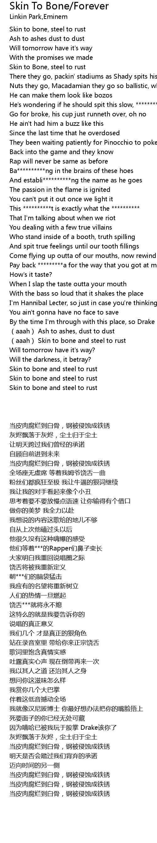 | [00:25.39] | Skin to Bone, steel to rust |