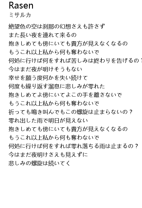| [04:28.820] | 悲しみの螺旋は続いてく |