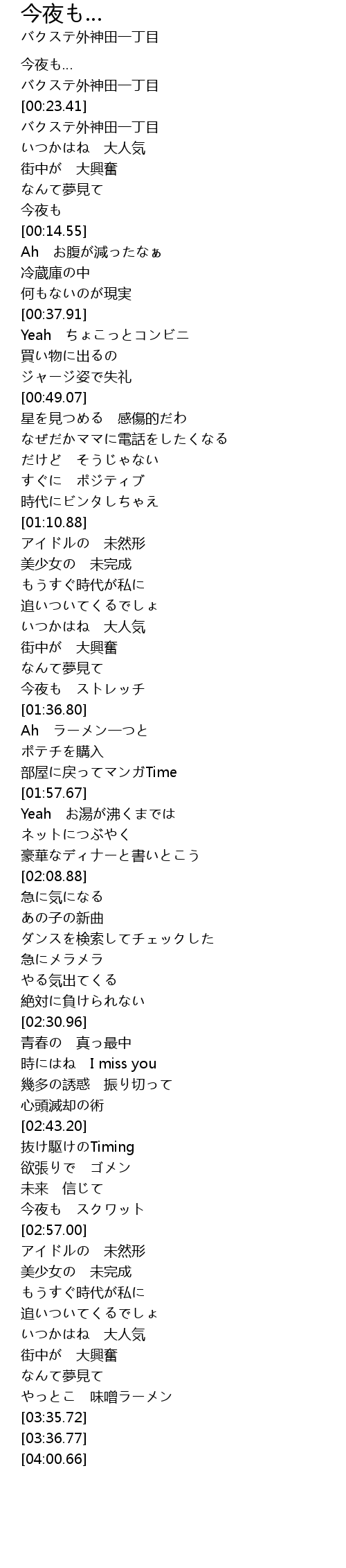 | [00:16.62] | バクステ外神田一丁目 |