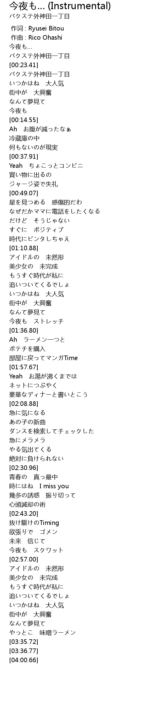 | [00:16.62] | バクステ外神田一丁目 |