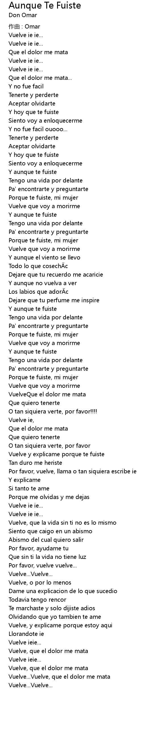 | 歌曲 | Aunque Te Fuiste |