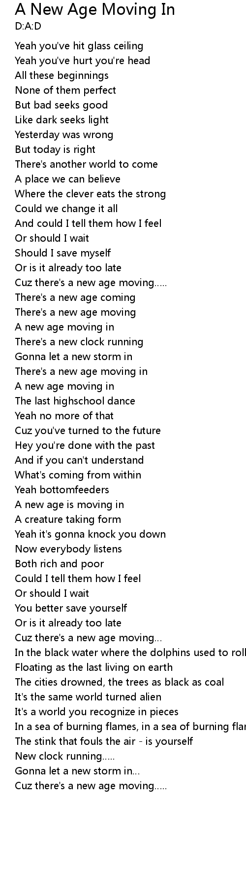 | Cuz there' s a new age moving | |