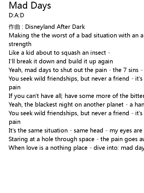 | Yeah, mad days to shut out the pain - the 7 sins - the sorrows seven | |