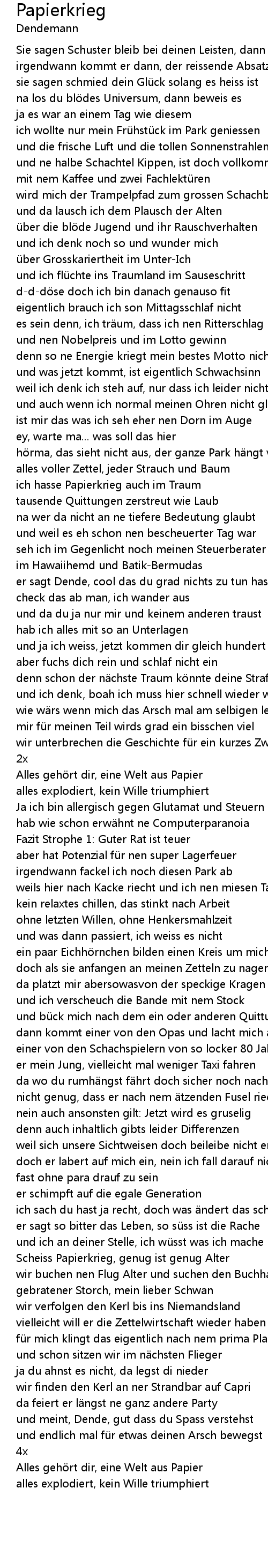 | 歌曲 | Papierkrieg |