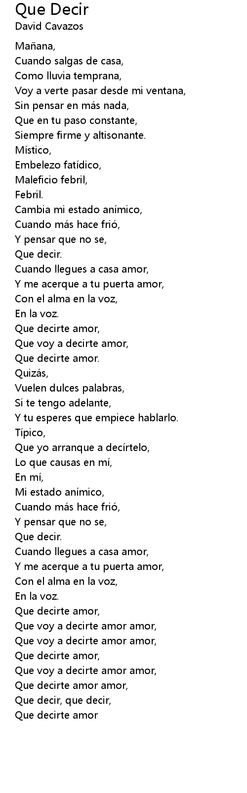 | Que decirte amor amor, | |