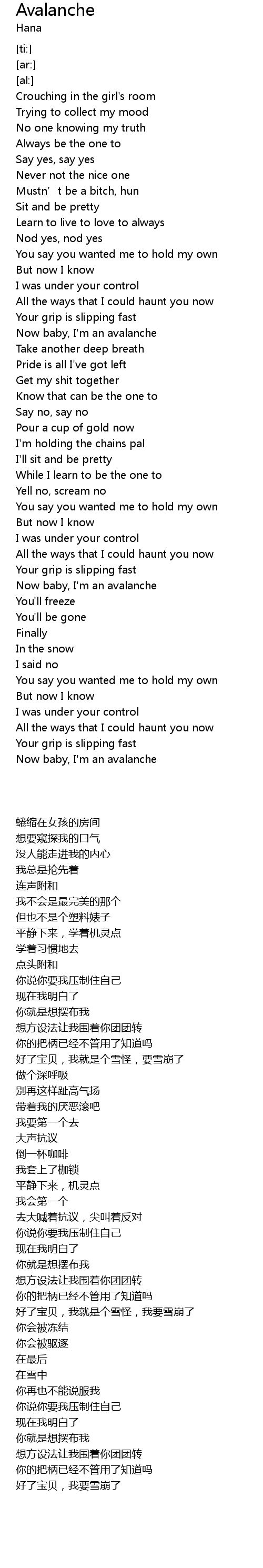 | [01:58.20] | 好了宝贝,我就是个雪怪,我要雪崩了 |