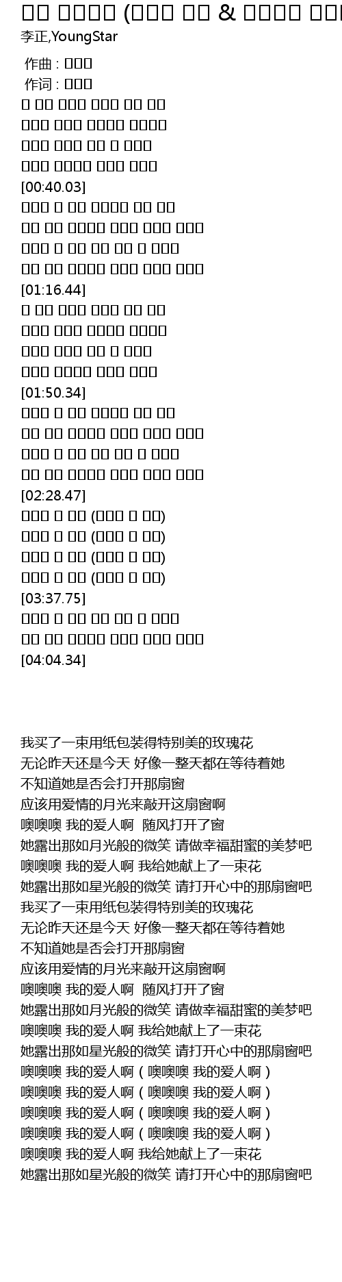 | [03:38.31] | 오오오 내 사랑 그대 드릴 꽃 한송이 |