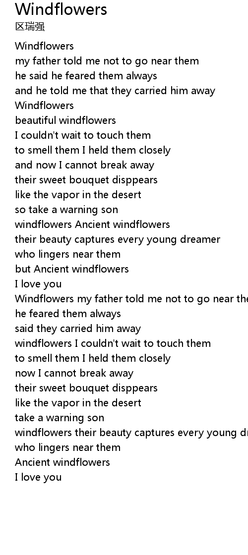 | [02:19.76] | Windflowers my father told me not to go near them |