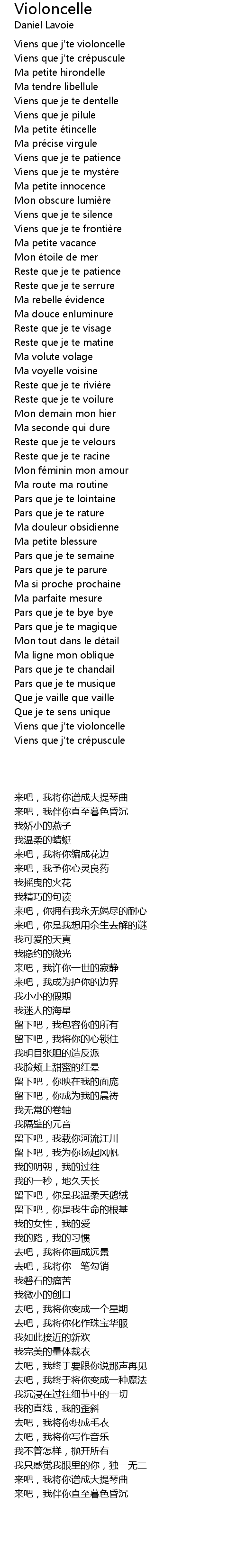 | 歌曲 | Violoncelle |