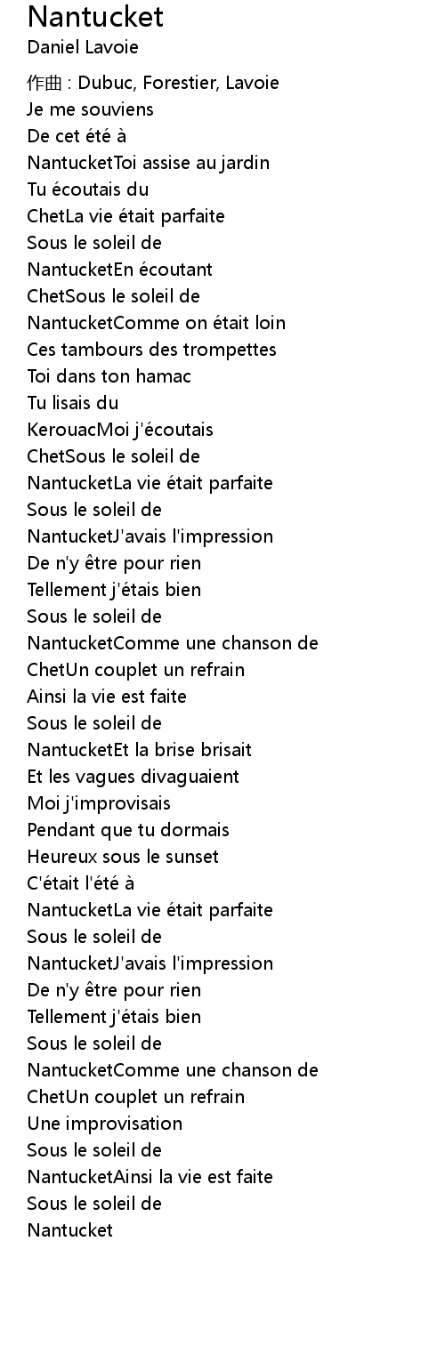 | 作曲 : Dubuc, Forestier, Lavoie | |