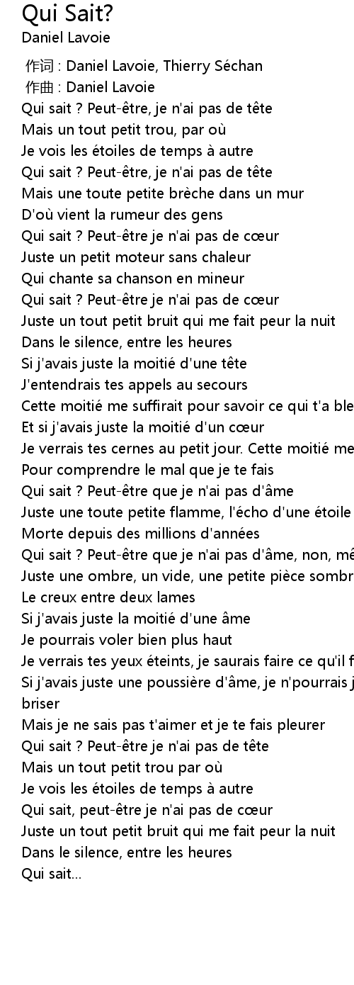 | 歌曲 | Qui Sait? |