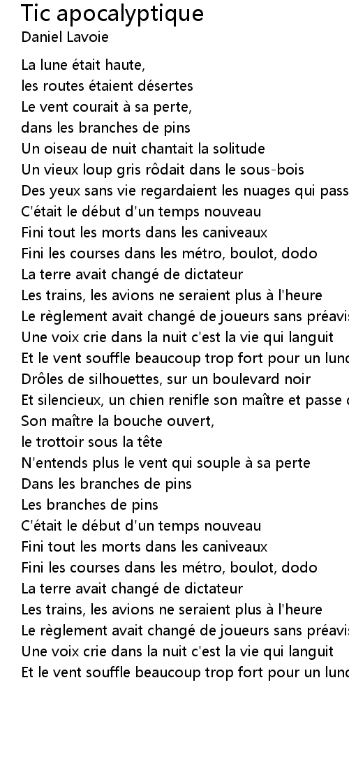 | 歌曲 | Tic apocalyptique |