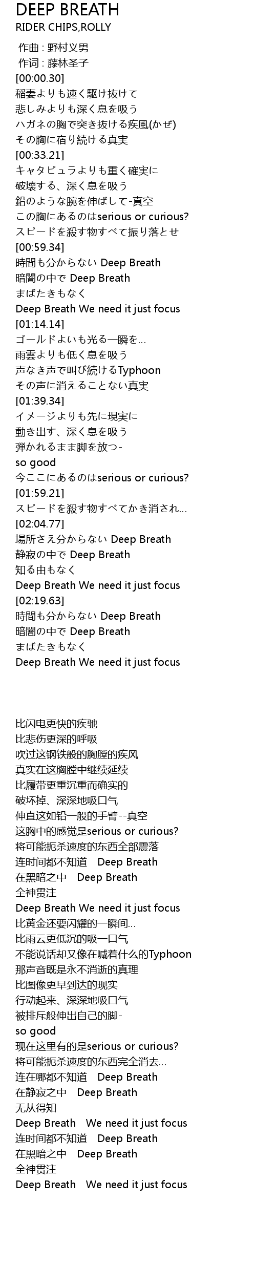 | [02:09.32] | 静寂の中で Deep Breath |