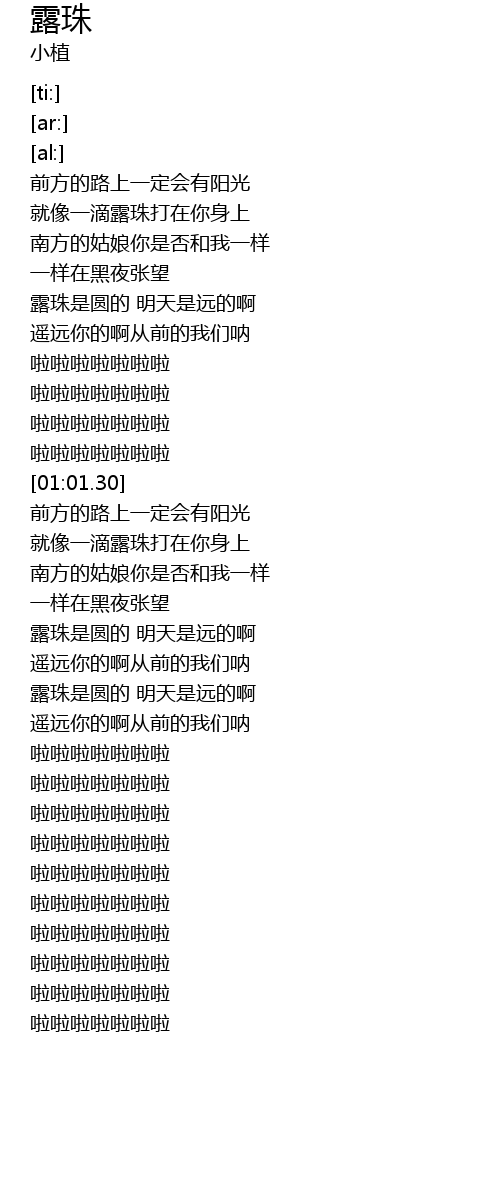 | [03:01.01] | 啦啦啦啦啦啦啦 |