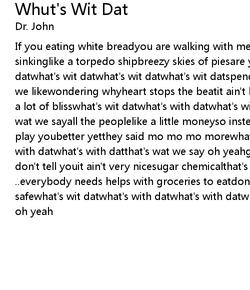 | If you eating white breadyou are walking with methey tell the chips they sinkinglike a torpedo shipbreezy skies of piesare you telling lieswhat's wit datwhat's wit datwhat's wit datwhat's wit datspending a lil lessfor all the crap we likewondering whyheart stops the beatit ain't bitshe aint a go getterthat is a lot of blisswhat's wit datwhat's with datwhat's with datwhat's with datthat's wat we sayall the peoplelike a little moneyso instead of sugaror honeyi wont play youbetter yetthey said mo mo mo morewhat's wit datwhat's with datwhat's with datwhat's with datthat's wat we say oh yeahgot the best surprisedwhat they don't tell youit ain't very nicesugar chemicalthat's what you will need fromthe ..everybody needs helps with groceries to eatdon't go with the popeschampagne safewhat's wit datwhat's with datwhat's with datwhat's with datthat's wat we say oh yeah |