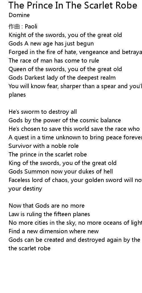 | By the eye of the prince in the scarlet robe [CHORUS] | |