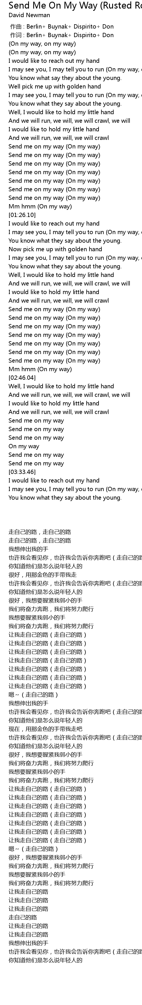| [01:45.26] | I may see you, I may tell you to run On my way, on my way |