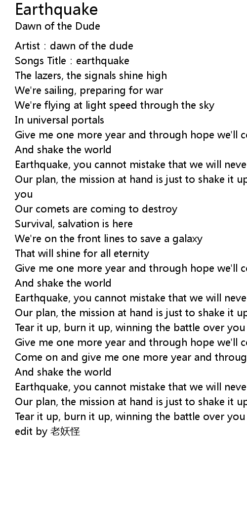 | [00:07.82] | Songs Title: earthquake |