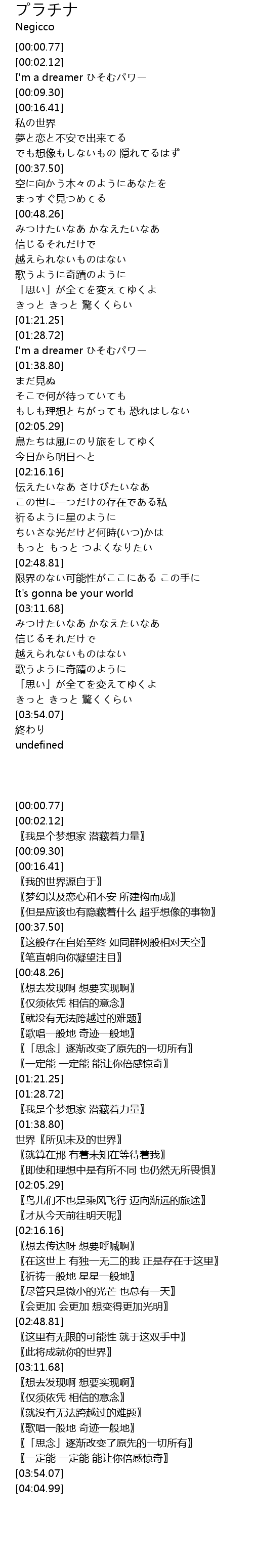 | [01:44.74] | 世界〖所见未及的世界〗 |