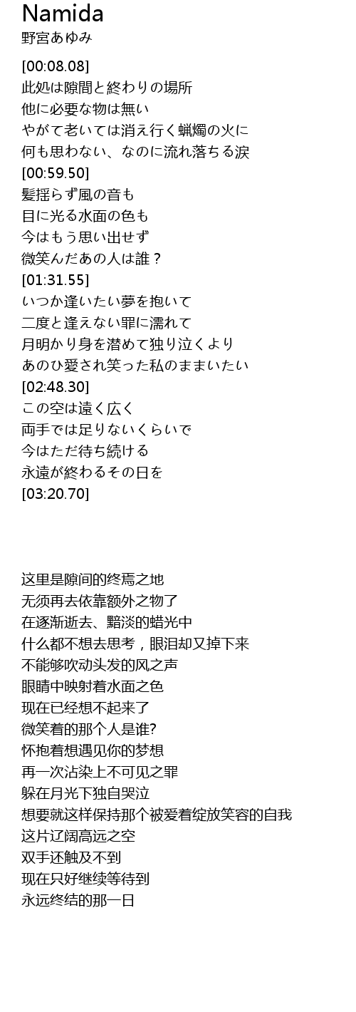 | [00:44.60] | やがて老いては消え行く蝋燭の火に |