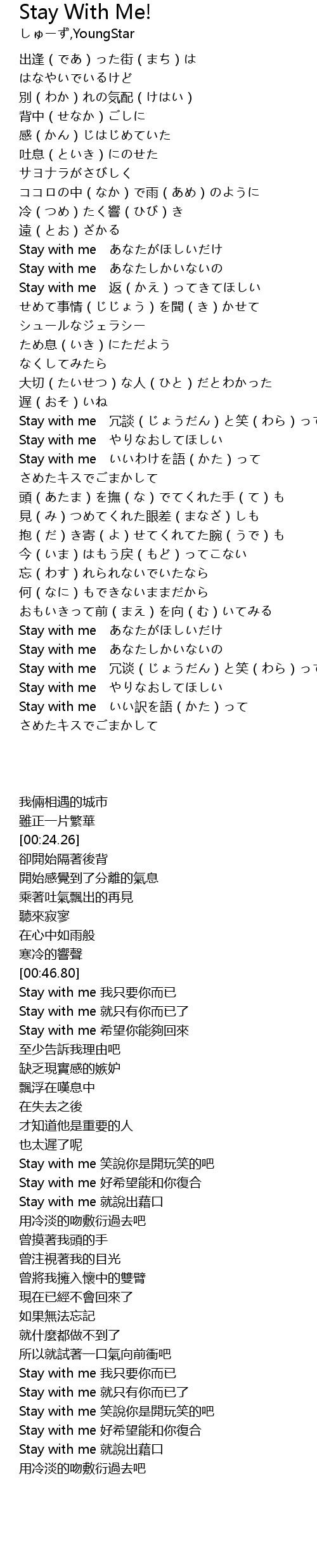 | [00:56.72] | Stay with me 返(かえ)ってきてほしい |