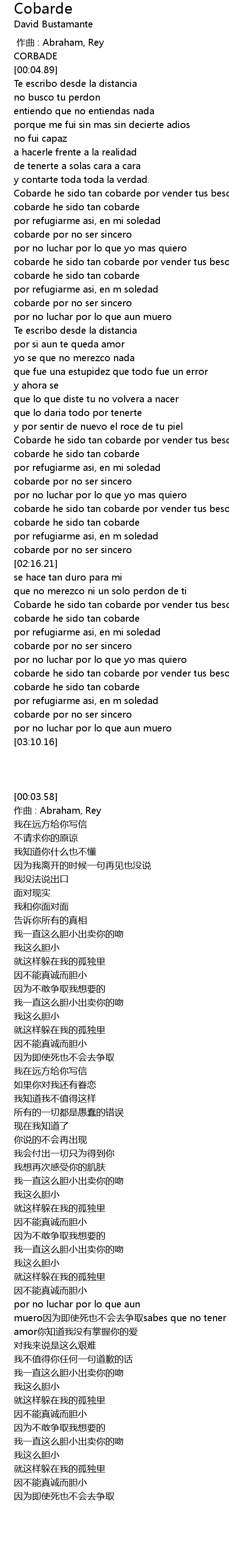 | [00:00.00] | 作曲 : Abraham, Rey |