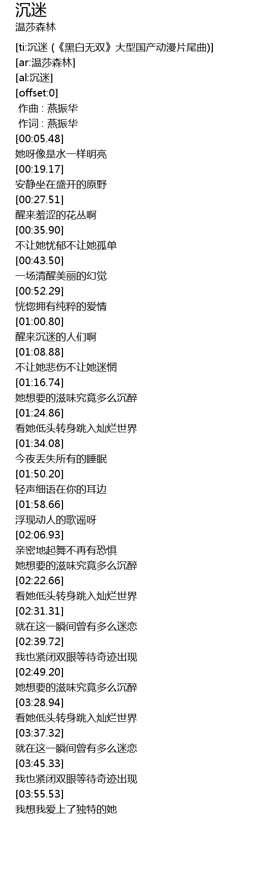 | [ti:沉迷 (《黑白无双》大型国产动漫片尾曲)] | |